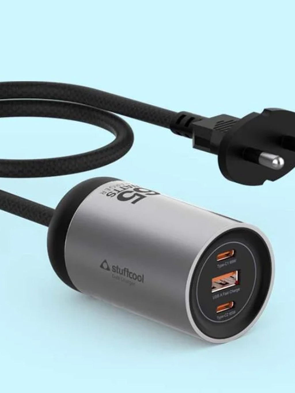 दो USB-C और एक USB-A पोर्ट मिलकर स्मार्टफोन, टैबलेट और लैपटॉप सभी को एक साथ बिना स्लोडाउन के चार्ज कर सकते हैं।