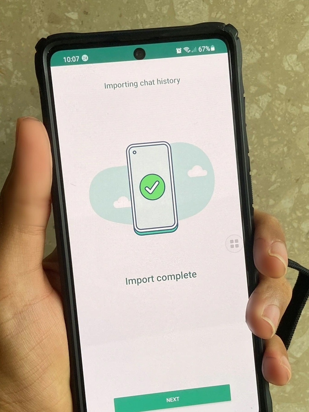 सारी प्रक्रिया पूरा होने के बाद Next पर टैप करना होगा। जिसके बाद आपकी सभी चैट, फोटो, वीडियो, वॉइस नोट और डॉक्यूमेंट नए Android फोन में मिल जाएंगे।